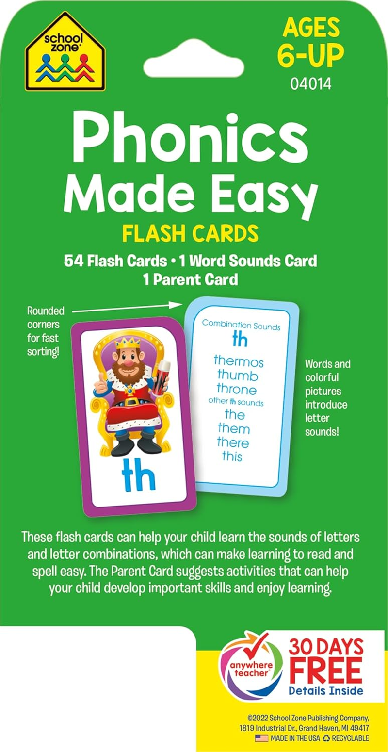 School Zone Phonics Made Easy Flash Cards: 56 Cards, Kindergarten, 1St Grade, 2Nd Grade, Early Reading, Short Vowels, Long Vowels, Letter Combinations, Word-Picture Recognition, Ages 6+