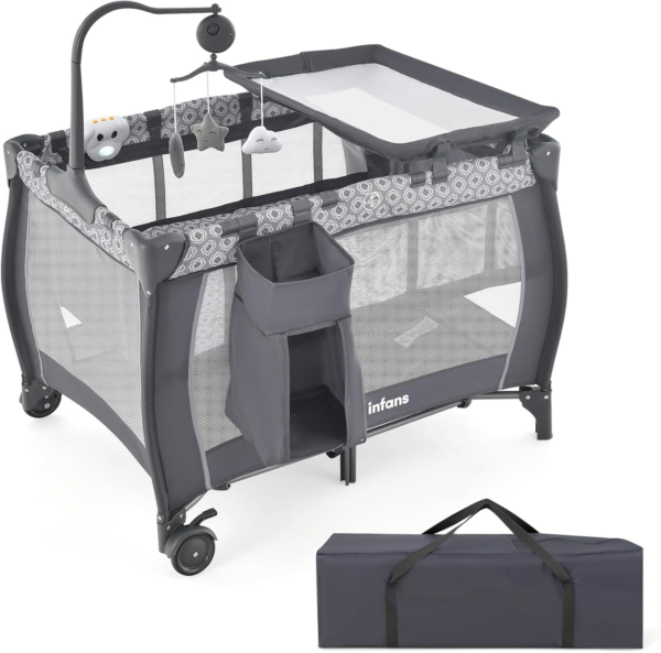 Safety is always a top priority when choosing a crib. INFANS 3-in-1 Portable Crib uses non-toxic, odourless materials to ensure a healthy and comfortable environment for your baby. A detachable diaper table provides daily care for your kids. This one also comes with a side pocket for some precious supplies. In addition, music box and toy hanging poles help infant sleep better and also provide entertainment during playtime. Overall, choose a 3-in-1 multifunctional crib with advanced features, combined with quality and safe materials, to provide peace of mind and practical parenting solutions for parents.