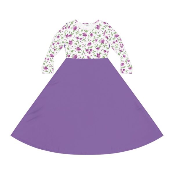 Floral Bodice Purple Dress – Long Sleeve A-Line