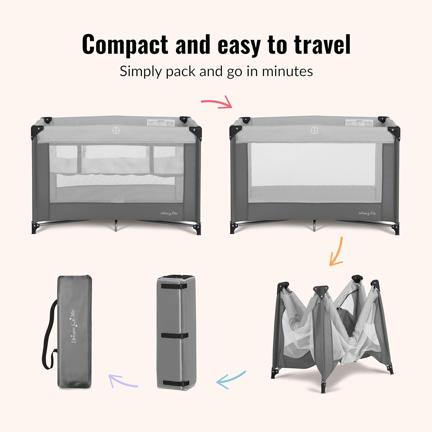 - Lightweight & Travel-Friendly – Designed for parents on the go, this portable playard features a lightweight yet sturdy frame that folds quickly and stores easily in the included travel bag.